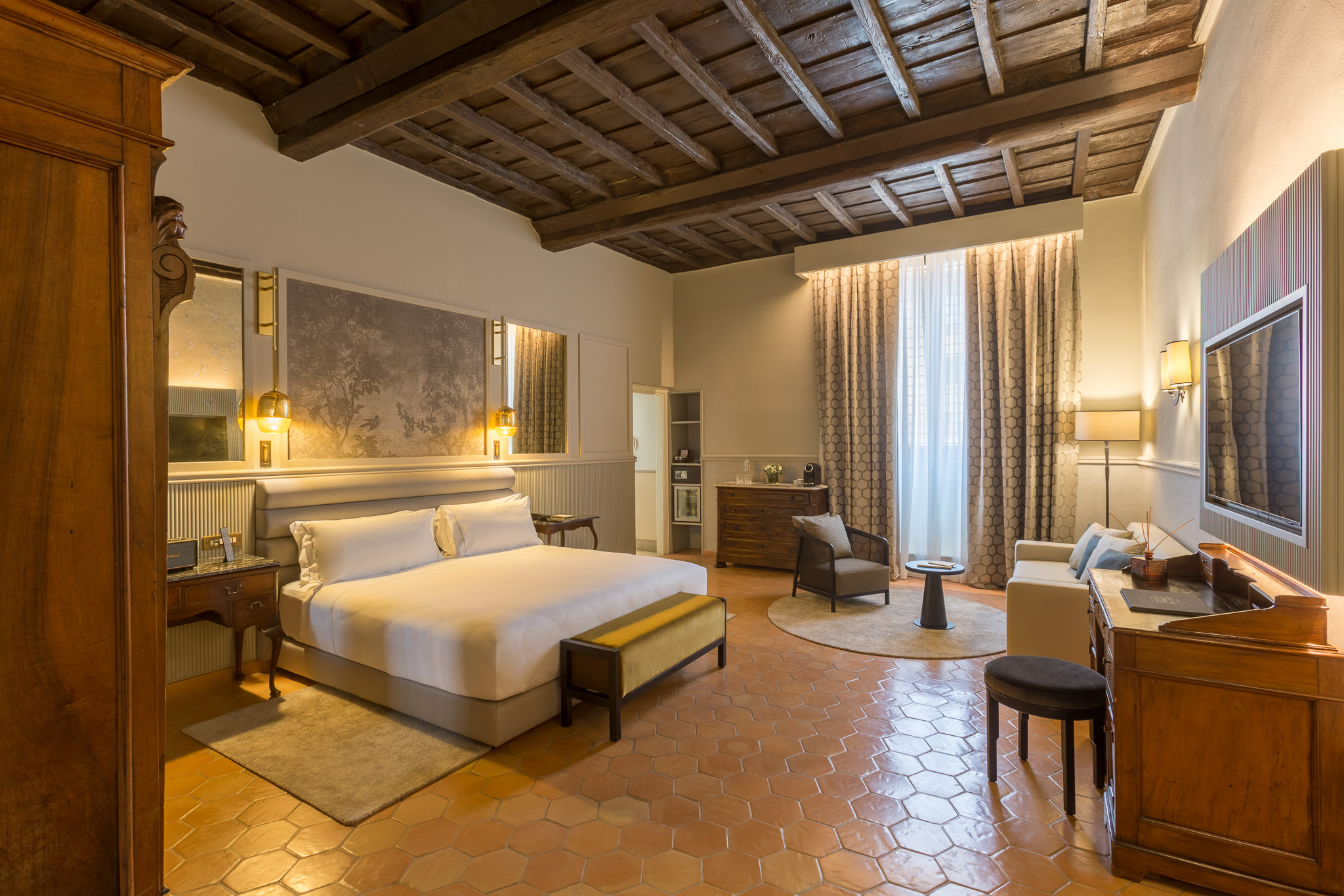 The Donna Camilla Savelli, housed in a former Baroque Monastery, is situated at the foot of the Gianicolo Hills in an intimate and quiet corner of Trastevere, Rome. A place to lose yourself in during a Roman retreat with artistic nuances.